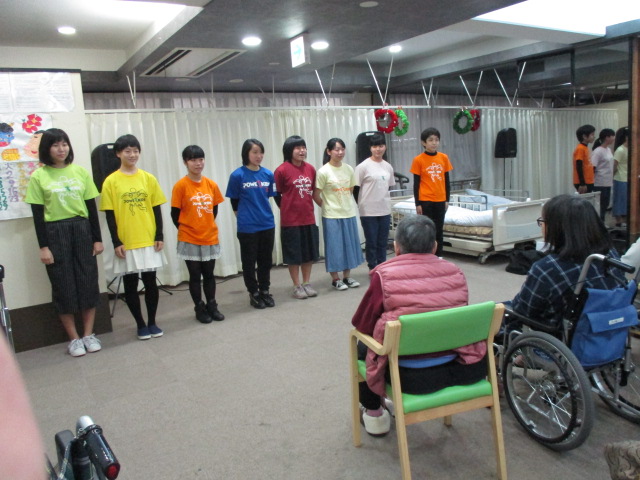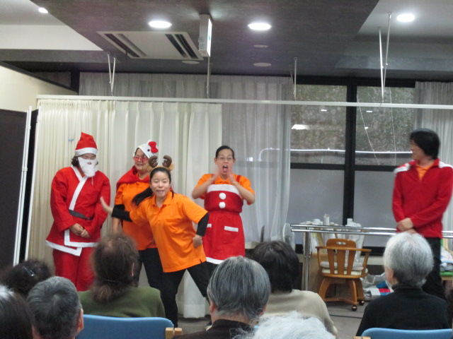 職員の寸劇を観て頂いたり、歌を歌ったり、クリスマスプレゼントに「ビンゴゲーム」をしたりしました。
