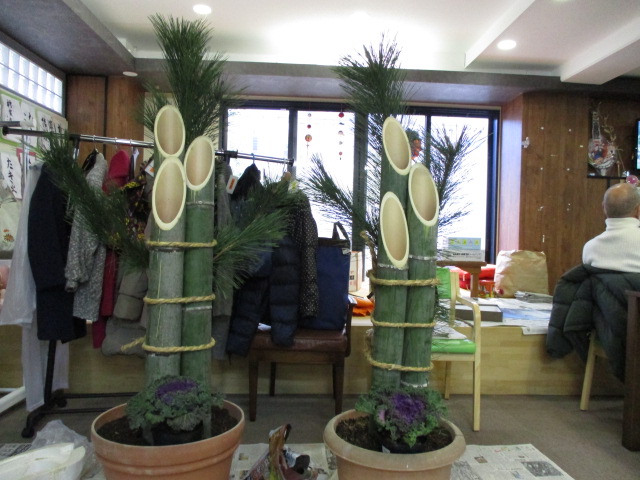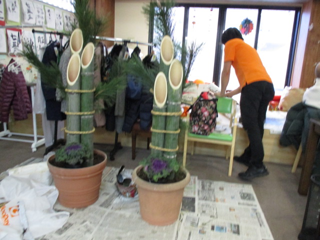 あいデイサービスセンターでは、毎年恒例の、「門松作り」をし、今回も立派なものができました。
