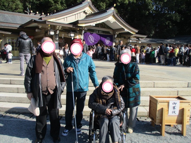 天候にも恵まれ大安、吉日の今日、利用者様数名と護国神社へ初詣に行って参りました。