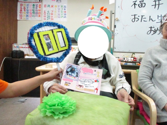 いつもお世話になっております。看護師森山です。今日は2名の利用者様のお誕生会でしたが、