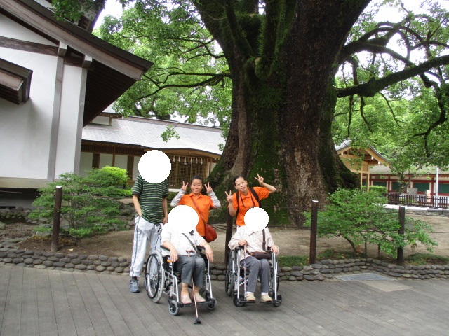 立派なご神木の前で記念撮影です
