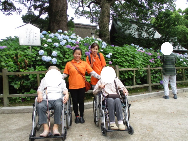こちらは紫陽花の花と。ケータイで写真を撮って思い出づくりです。