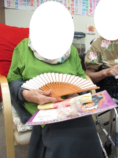 白寿にちなみまして、白い扇子をプレゼントさせて頂きました。