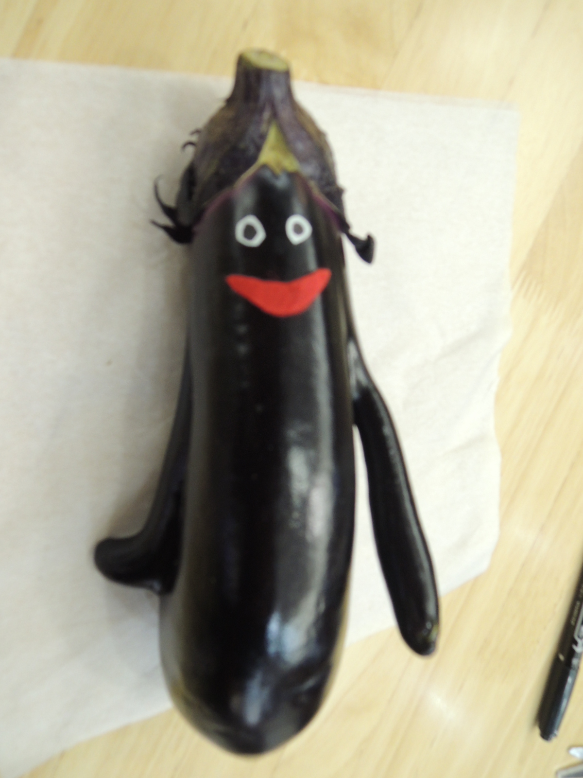介護職員の原田二郎です。 あいデイサービスセンターでは毎日手作りのお食事を提供していますので、スーパーで食材を仕入れてきたりするのですが、 その中から変わった形の茄子を職員が発見!!
