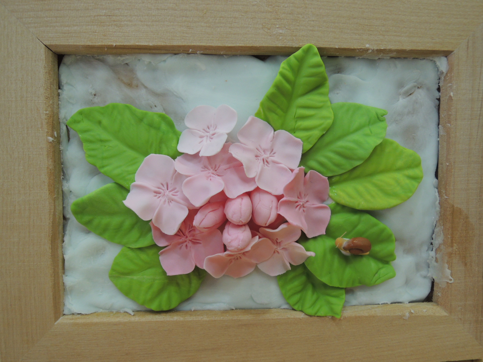ピンクや緑の粘土をコネコネ・・・花、蕾、葉っぱをたくさん作って・・・