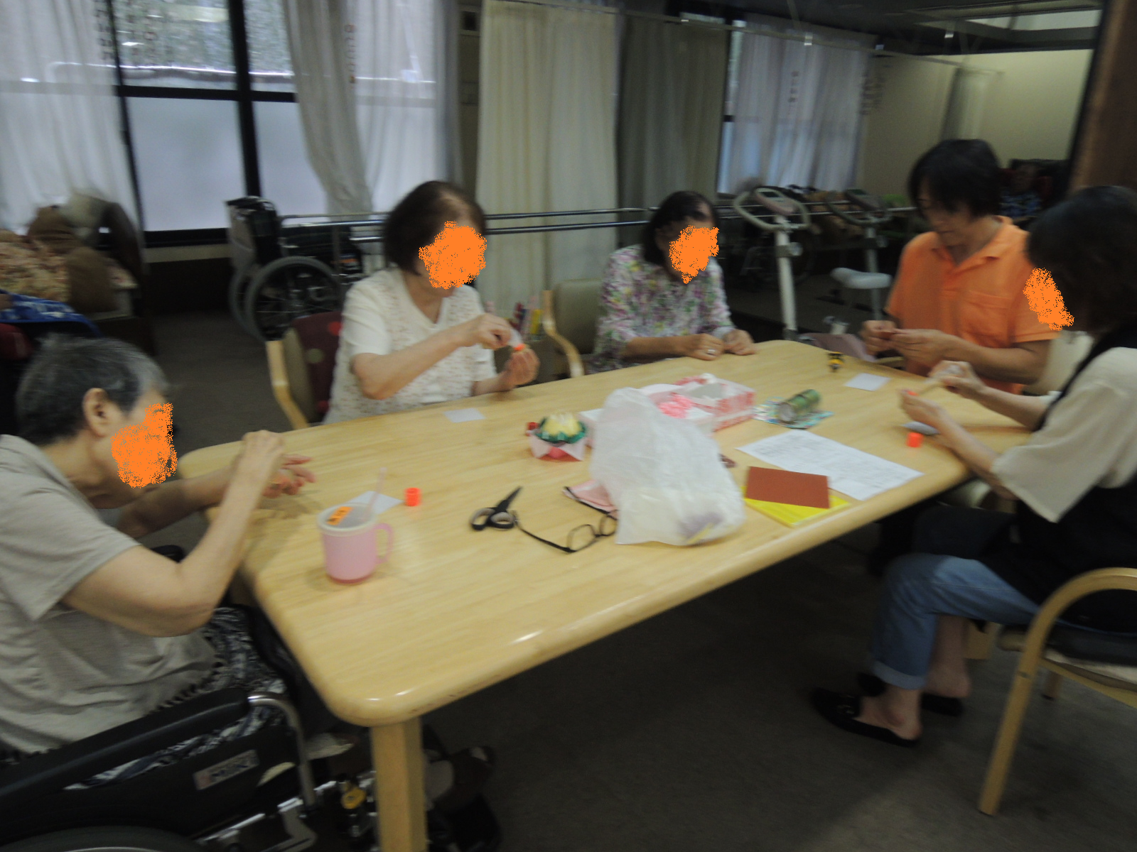 今月の工作は「ひまわり」 色紙とストローで作ります
