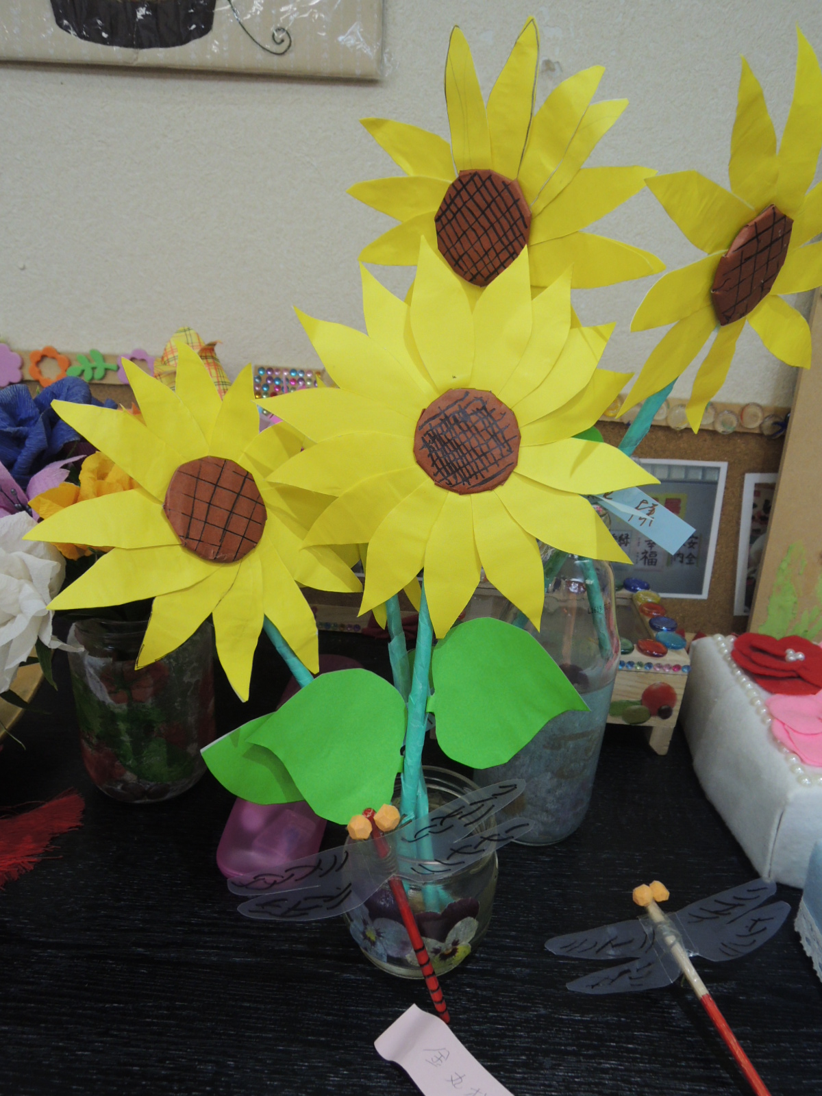 どうです~かわいいでしょ!最近作った「とんぼ」も一緒に飾りました!