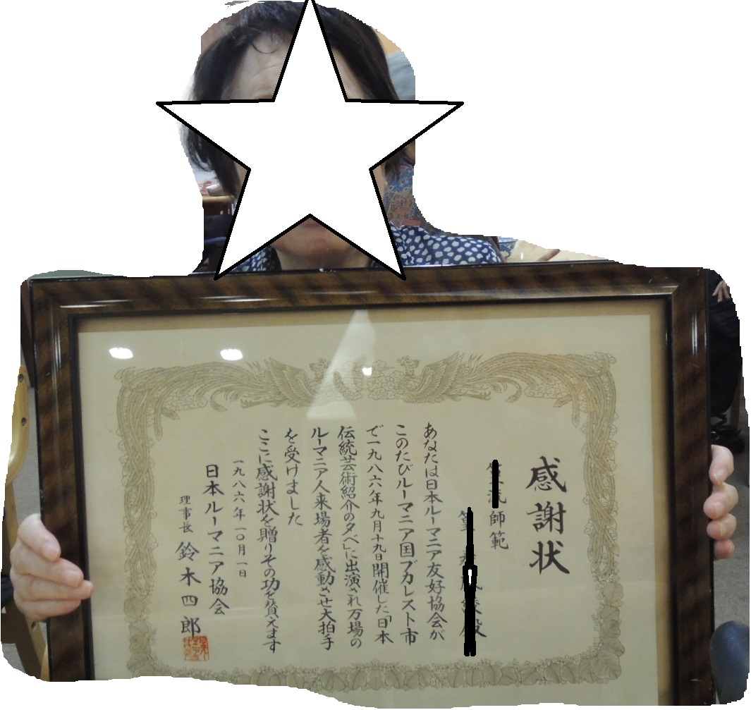 この方は、ルーマニアで踊りをされたり貢献されて、「ルーマニア協会」から感謝状を頂いたそうです。