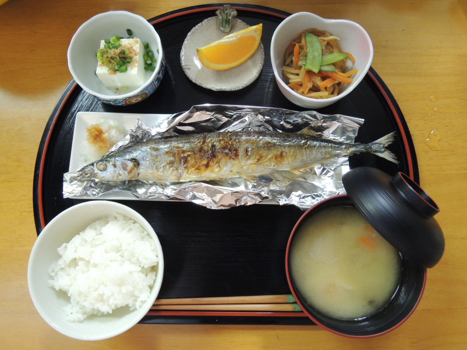 秋刀魚の骨が心配されましたが、昔の方は食べ方がとてもお上手。きれーいに、召し上がられました。