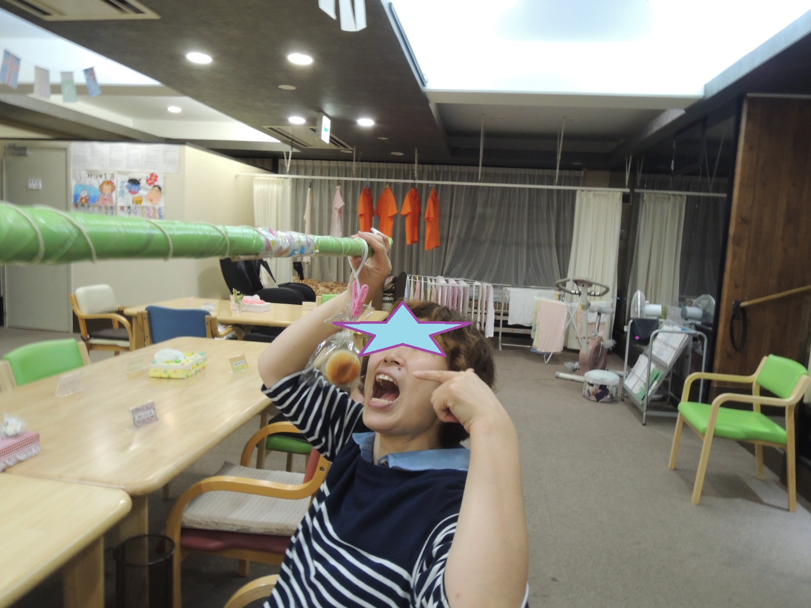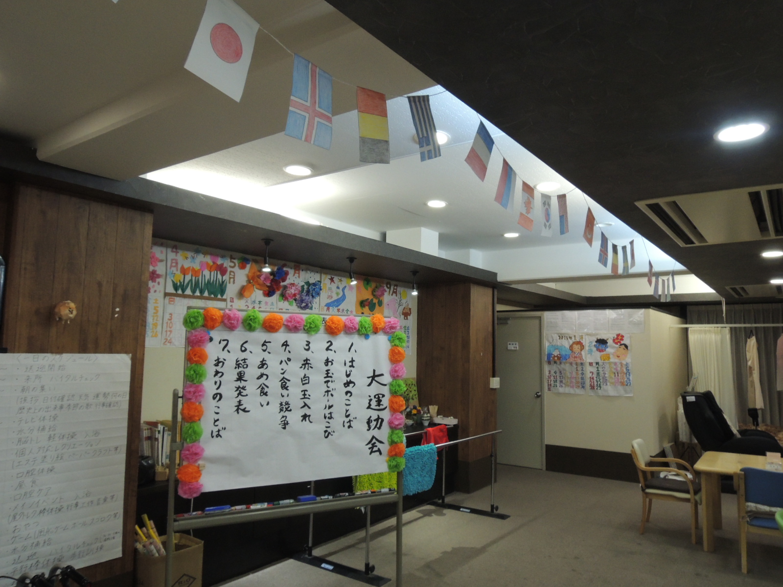 もう準備は万端でございます。今日も利用者様と一緒に万国旗をたくさん作りました!!